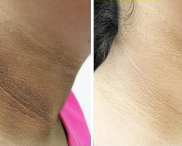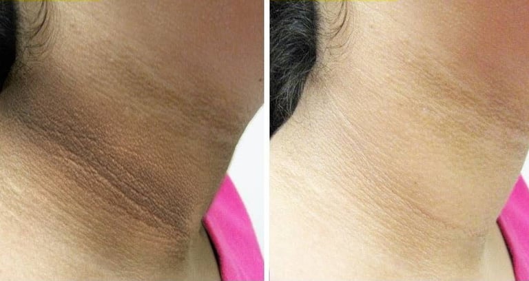Pode ser usado no rosto, virilha, axilas e outras áreas com manchas.